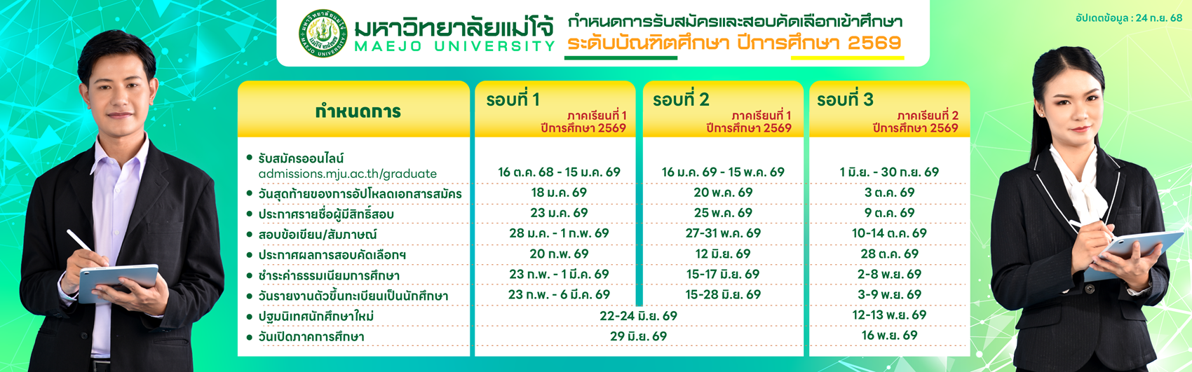 ปฐมนิเทศนักศึกษาใหม่ระดับบัณฑิตศึกษา มหาวิทยาลัยแม่โจ้ ประจำภาคการศึกษาที่ 1/2568 (Orientation for Maejo University's Graduate Students for Semester 1/2025)
